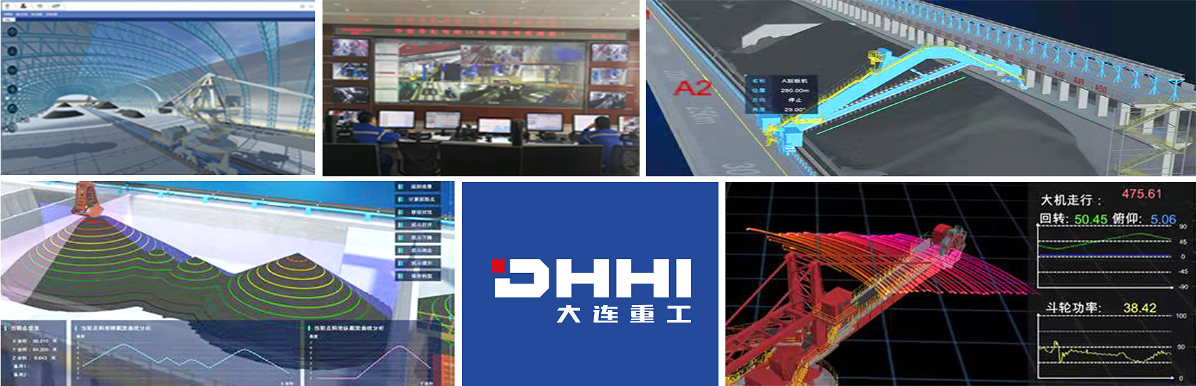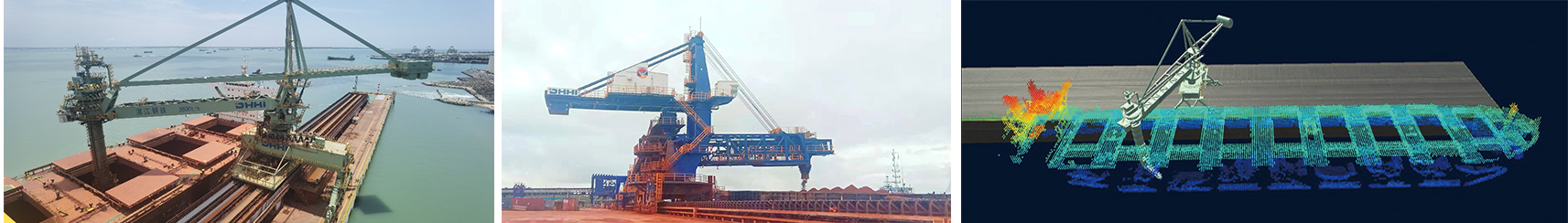该系统具备船型扫描实时成像、多种船型定位识别、舱内取料智能决策、三维可视化场景还原等功能,相比其他散货船型识别算法通用性更强,基于设备运动学模型、有限元模型,构建了融合几十种取料工艺策略的决策分析系统,形成多目标优化后的取料工艺策略,舱内智能化取料覆盖率可达80%以上。另外,VR仿真平台可实现工艺虚拟仿真,大幅减少现场调试时间。