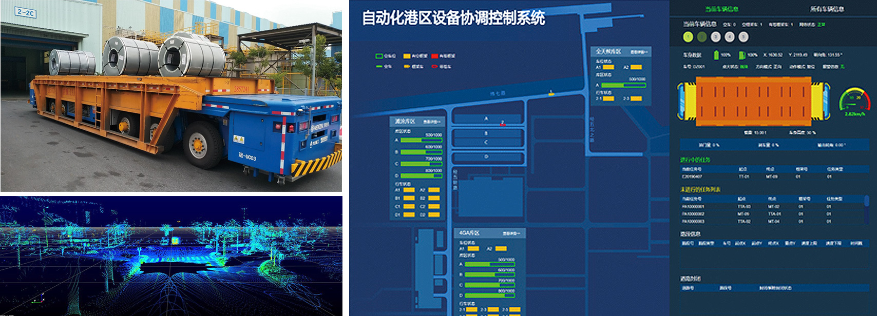 重型AGV是用来载运重型组件的智能运输车辆,具有自主导引运行,自动升降、多种转向模式、避障防撞等功能,产品支持惯性导航、自然导航、激光导航等多种导航方式,油电混动、纯电等动力方式,液压、电力等驱动方式,无人操作、有人遥控等多种控制方式,载重重量最大可达200吨。适应室内外混合开放路面,工作效率高、适应性强、运行平稳、安全性高。主要应用于冶金、制造、港口、仓储、特种行业等。对比普通车辆,运输效率提升35%,节油24%,设备利用率可达98%以上。