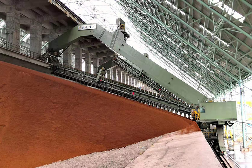 滚筒式混匀取料机适用于钢厂、焦化厂、水泥厂和化工等企业的原料场,搬运输送矿石、煤、煤炭等散料,是大型高效率的混匀取料设备。该产品原理通过料耙在整个料堆断面上横向刮料,底部筒体漏斗水平进尺取料转运到地面皮带。具有混匀效果好,出料成分稳定,作业效率高等特点。大连重工于1989年开始研制该类设备,取料能力范围覆盖800~2100t/h,轨距范围30-40m。