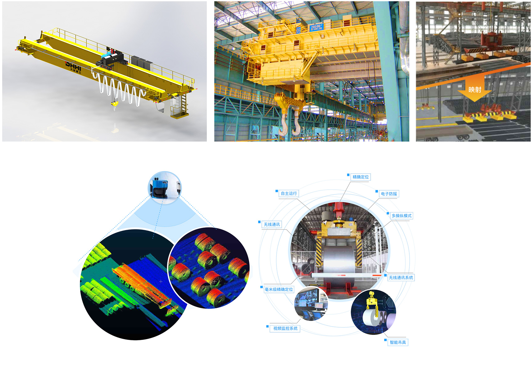 大连重工致力于钢水罐、铁水罐、钢卷、钢板、方坯、钢锭、棒线材、煤、矿等物料无人化搬运系统研发,可为客户提供包含机器视觉、智能算法、故障诊断、寿命管理、远程监控与运维、智能起重设备、智能地面输送设备等子系统及设备的整体解决方案。